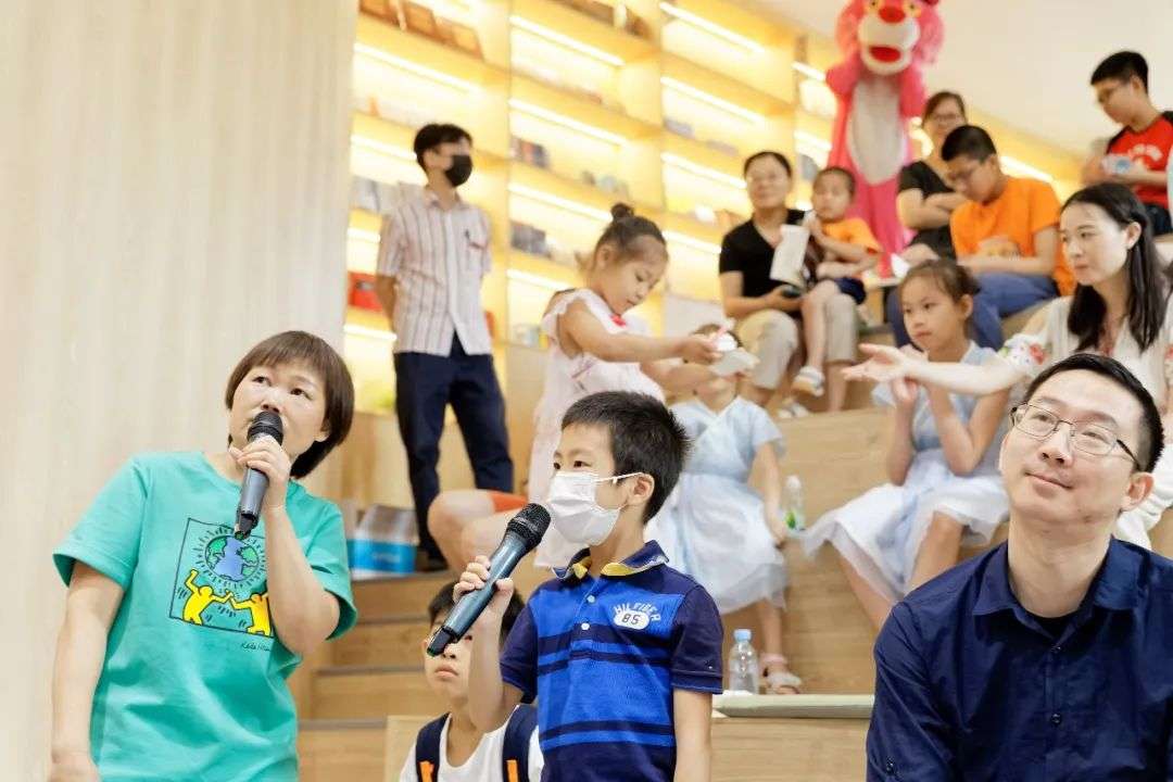 今天的读书分享会,还以色彩为主题设置了游戏和读者提问的环节,有抢答题、古诗词飞花令和“你来比划我来猜”,孩子们用真诚的话语抒发自己的感受。参与游戏和勇于提问的小朋友都获得了王勇英作品《弄泥小时候》《惊险科幻》系列书籍。