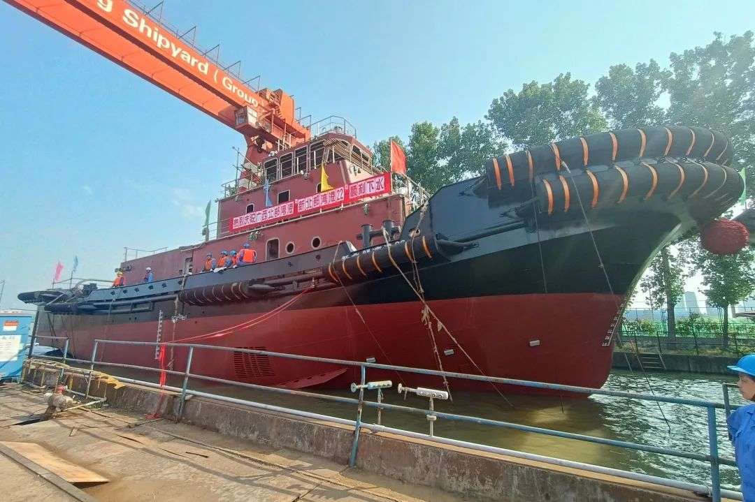 江苏镇江船厂北部湾港新建造拖轮下水仪式