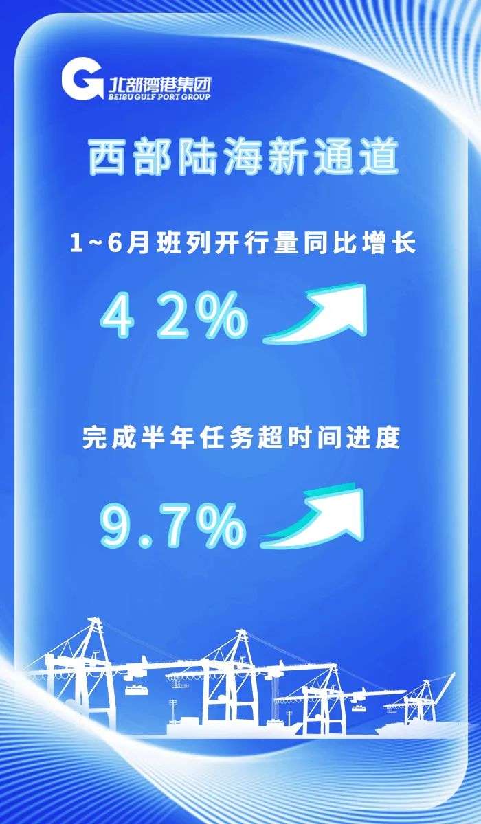 2022年,北部湾港集团旗下北港物流、北部湾联运加强与通道沿线政府部门、平台公司、铁路部门联动,加密开行渝桂、川桂、滇桂、黔桂等海铁联运班列,重点拓展区内班列辐射范围;持续在铁路运价下浮政策上释放红利,提升通道市场竞争力。截至6月30日,新增“太阳村—北部湾港”、“崇左—北部湾港”、“百色—北部湾港”、“印度—钦州—都拉营”等8条一口价线路,西部陆海新通道服务范围拓展至14省54市105站点。