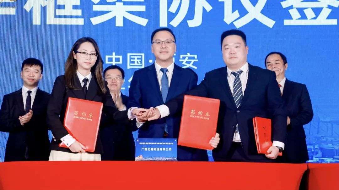 活动中,广西北港物流有限公司党委书记、董事长李泰霖,西安国际陆港多式联运有限公司执行董事、总经理邵博尔,陕西兴洲纺织科技有限公司副总经理李林洁,共同签订企业战略合作框架协议,激发“内连外畅”新活力,积蓄加快发展新动力。