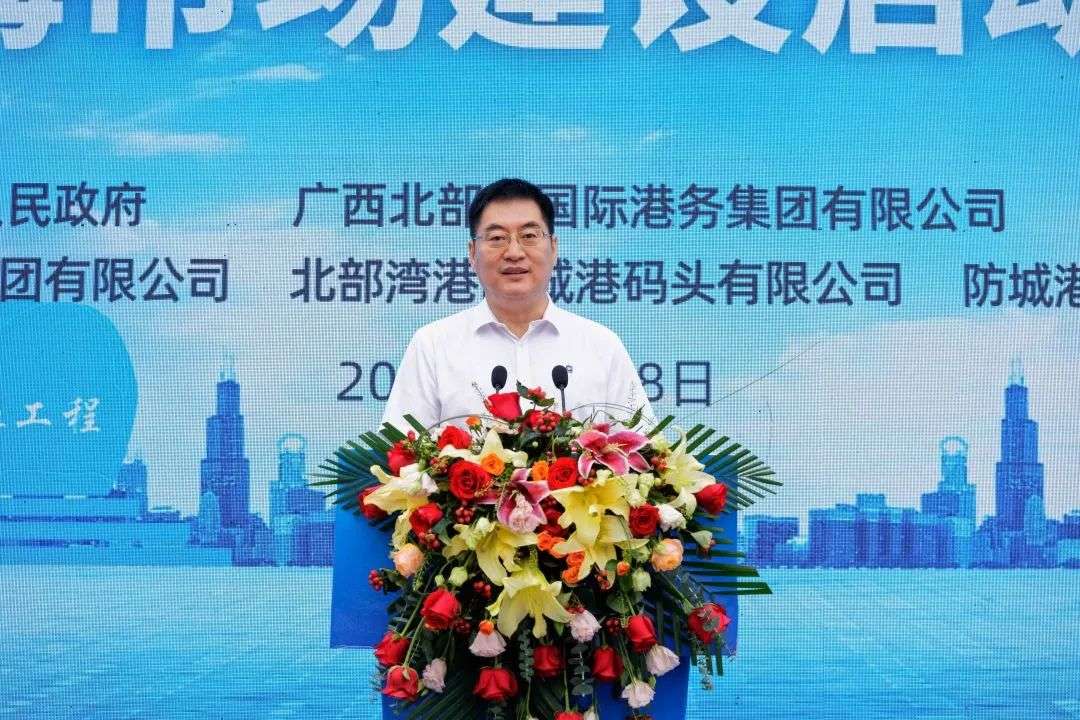北部湾港集团党委书记、董事长李延强现场致辞并宣布项目开工。他向长期以来关心支持北部湾港集团发展的防城港市委、市政府,中直、区直有关部门,各合作伙伴和社会各界表示衷心的感谢!向为码头建设奉献过青春和汗水的老前辈们致敬!向奋战在项目建设一线的同志们表示诚挚的慰问!