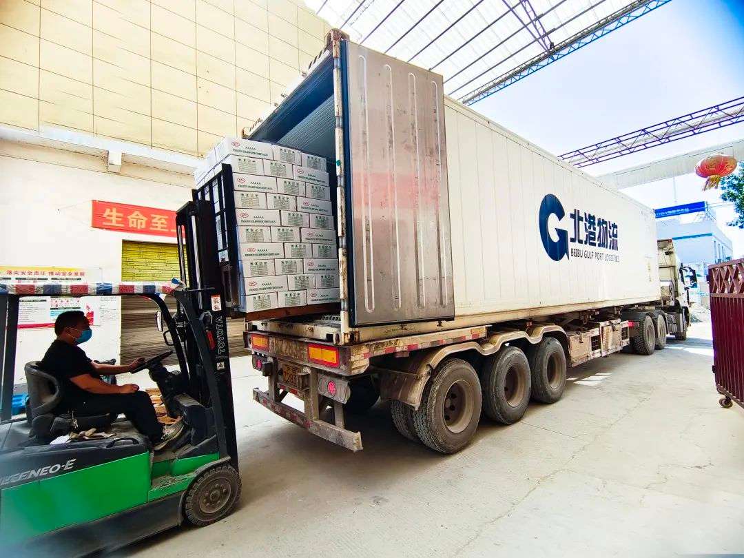 10月13日,一批全程使用北港物流自有冷藏集装箱运输、“享受”北斗系统远程精确控温的广西河池市特色产品——冷冻蚕蛹,从河池市宸龙食品有限公司仓库顺利出发,经汽运抵达钦州港后,将换乘北部湾港外贸航线出口至泰国。