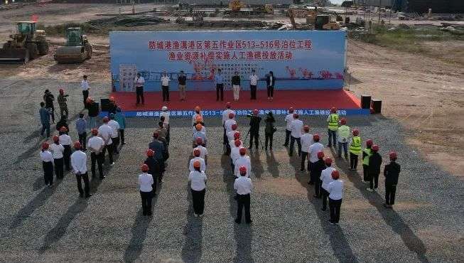 11月1日上午,北部湾港首次人工渔礁投放活动在防城港渔澫港区第五作业区举行。