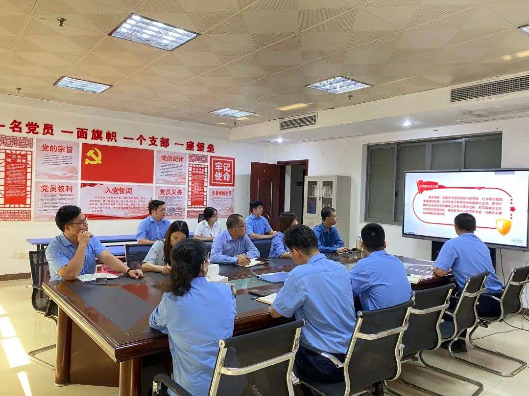 北港建设钦北投公司在北部湾航运中心15楼收看收听宣讲报告会