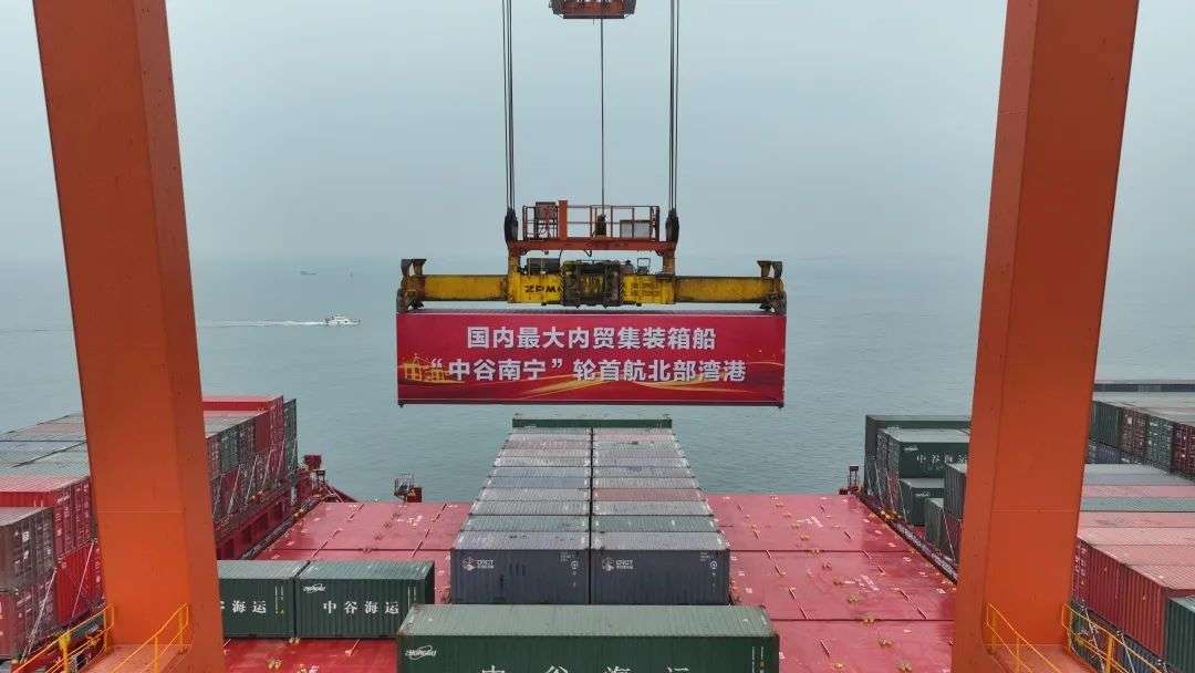 11月16日上午,国内最大内贸集装箱船“中谷南宁”轮首航北部湾港,稳稳靠泊在北部湾国际集装箱公司码头5#泊位,将为北部湾港集装箱吞吐量的节节攀升注入强大动能,也标志着北部湾港集团和中谷海运集团的战略合作再上新台阶。
