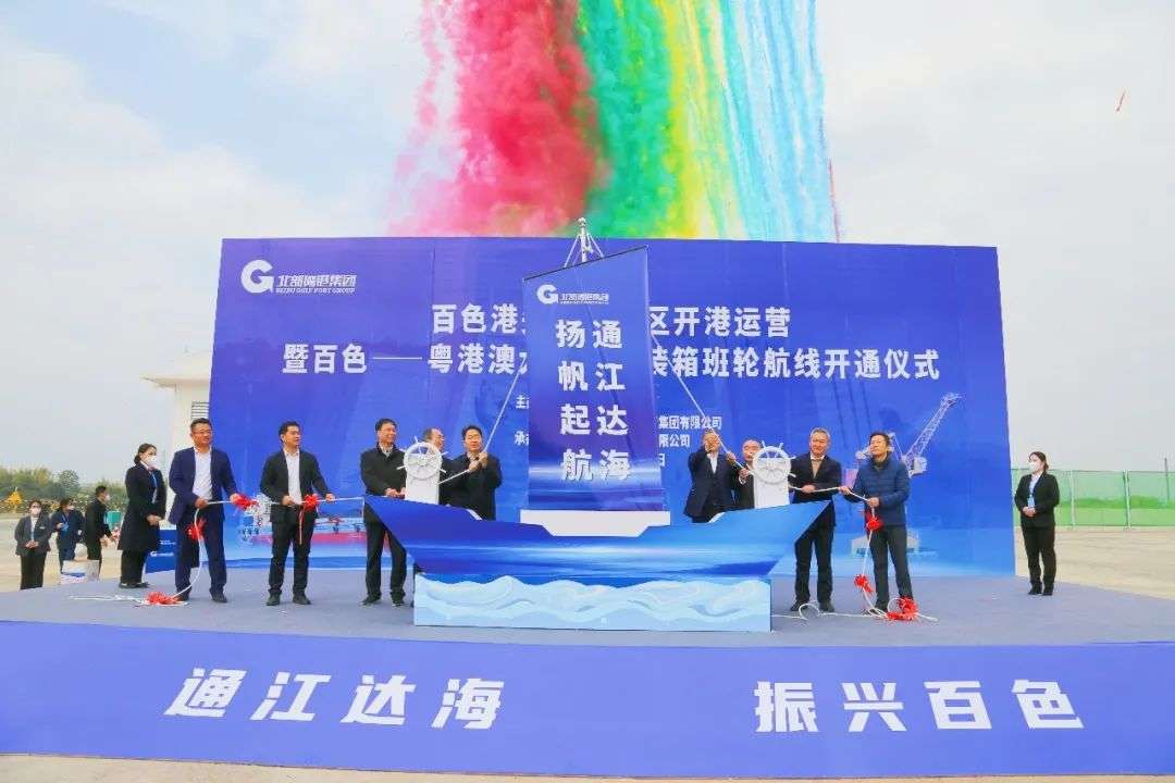 1月6日上午,百色港头塘作业区开港运营暨百色-粤港澳大湾区首条集装箱班轮航线开通仪式在百色市举行。