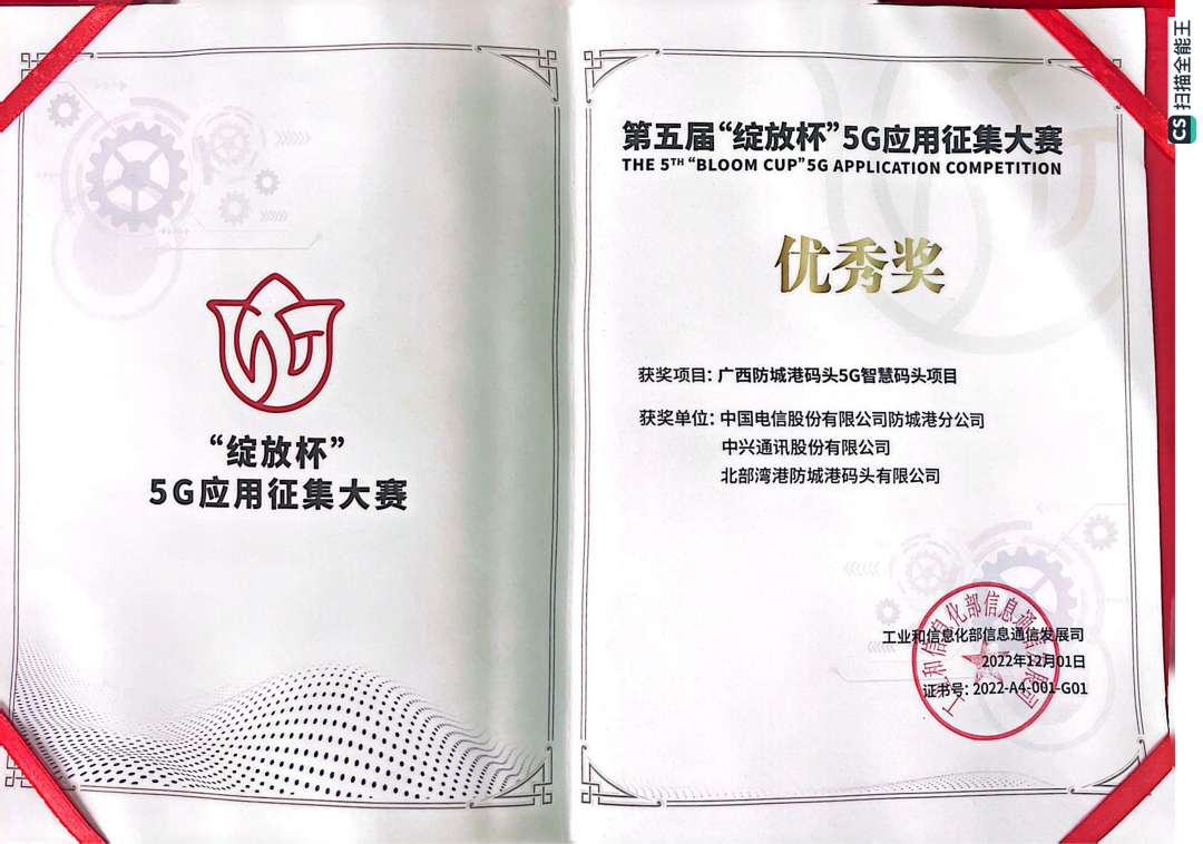 “广西防城港码头5G智慧码头项目”荣获此次全国大赛优秀奖,开拓了码头工业互联网应用的创新典范。