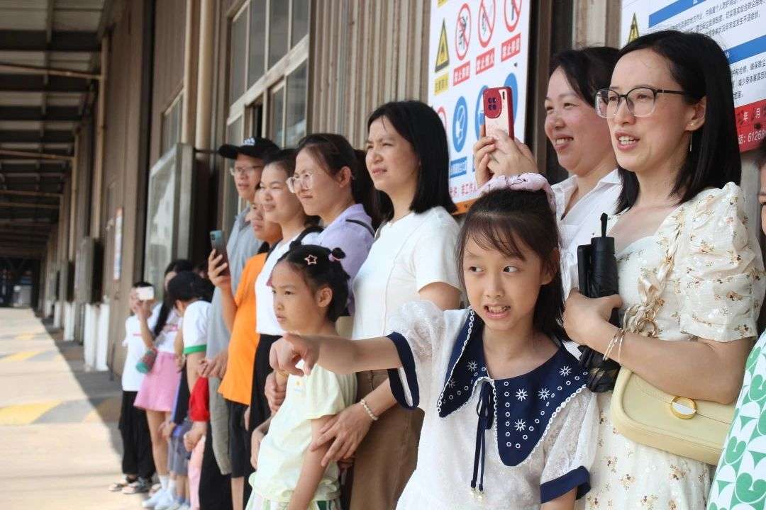 在钦州港区,孩子们参观码头作业现场及钦州自动化集装箱码头展厅,感受港口生产繁忙景象。