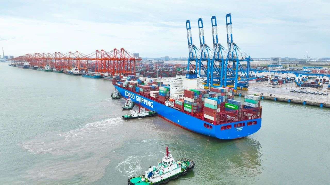2022年11月,单月完成1艘10万吨级、3艘15万吨级大型船舶的靠泊作业,形成15万吨级集装箱船舶常态化靠泊作业能力;12月,单月完成吞吐量超8.5万标箱,7、8号泊位达产能力得到验证。2023年5月13日,在“中谷银川”轮作业中创下船时效率190.6自然箱/小时,在该轮航线挂港中效率排名第一;6月26日,“中谷西安”船时效率再创新高,达到221自然箱/小时。