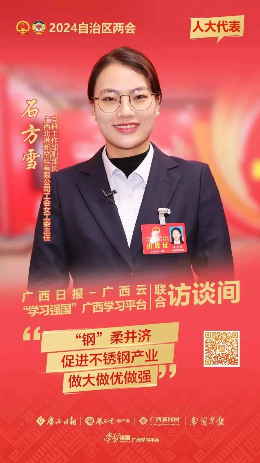 今年自治区政府工作报告中提出“全力做好强产业文章,加快构建现代化产业体系。”石方雪立足岗位,针对广西不锈钢行业发展现状,经过梳理和深入思考,提出了建议,她在大会上呼吁“自治区在构建现代化产业体系上应统筹考虑,整合构建不锈钢产业链,做强做优广西不锈钢产业。”