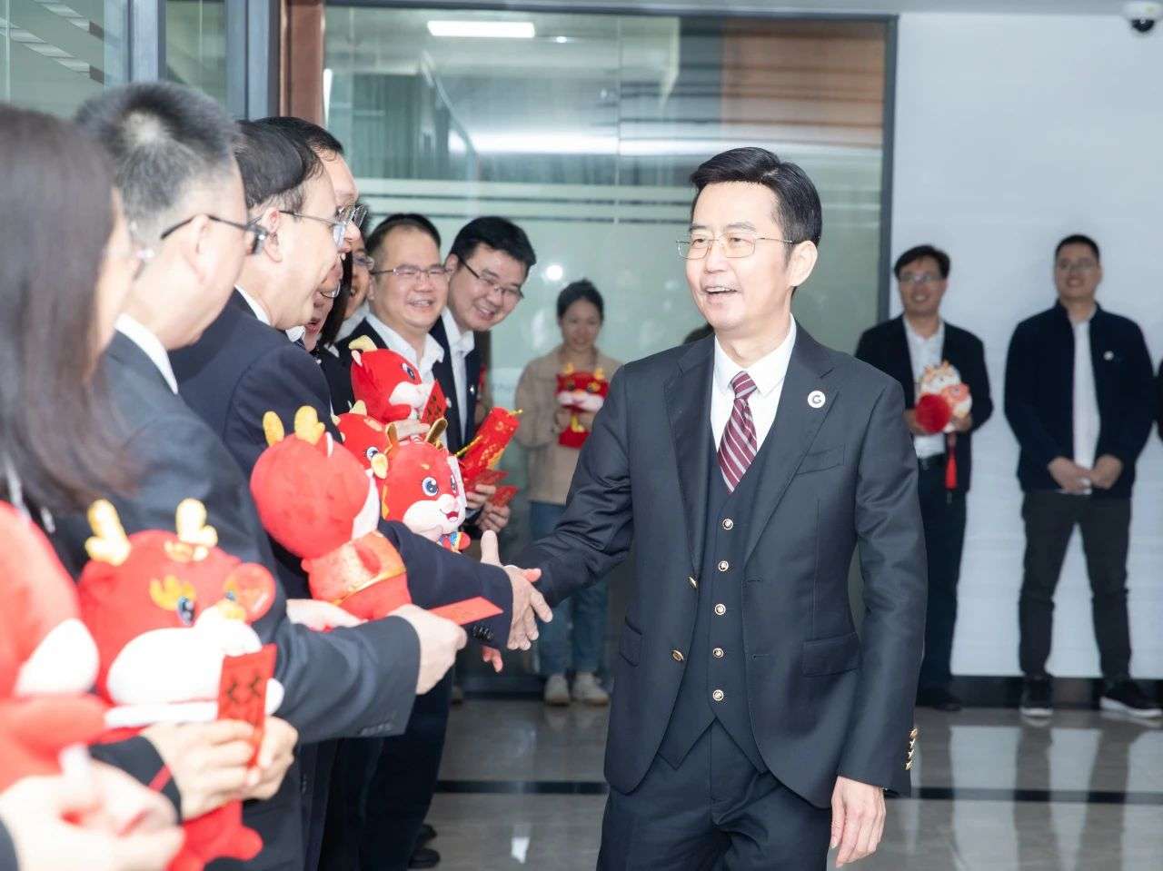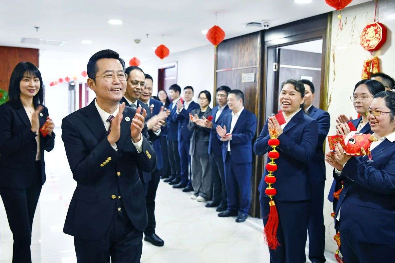 2月19日,北部湾港集团举行开年活动,集团公司党委书记、董事长周少波带领领导班子一道,给干部职工拜年,送上新春的祝福。