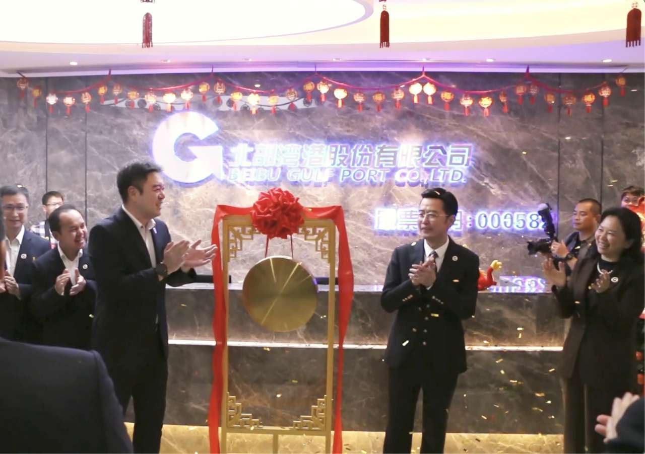 鸣锣开市,在北部湾港股份,周少波敲响北部湾港新年高质量发展新号角,“锵……”伴随着一声响亮的铜锣之音!送来集团公司领导班子的龙年新春祝福。